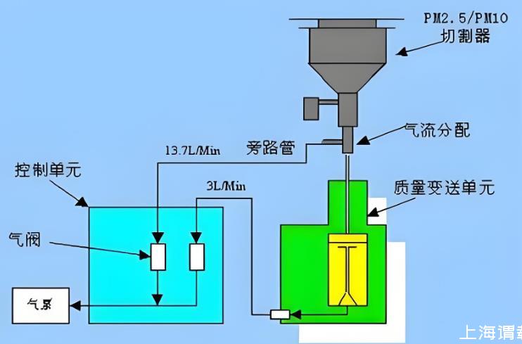 測量原理是基于錐形元件振蕩微量天平原理,核心部件為錐形元件振蕩器。錐形元件振蕩器在其自然頻率下振蕩,振蕩頻率由振蕩器件的物理特性、參加振蕩的濾膜質量和沉積在濾膜上的顆粒物質量決定。儀器通過采樣泵和流量計,使環(huán)境空氣以一恒定的流量通過采樣濾膜,顆粒物則沉積在濾膜上。測量出一定間隔時間前、后的2個振蕩頻率,就能計算出在這一段時間里收集在濾膜上顆粒物的質量,再除以流過濾膜的空氣的總體積,得到這段時間內(nèi)空氣中顆粒物的平均濃度。