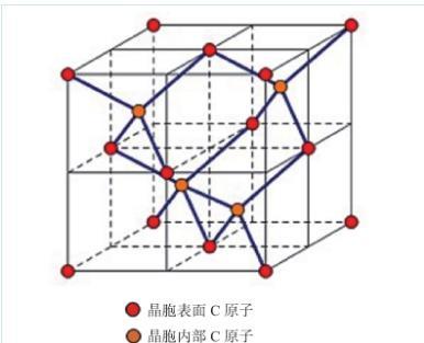 金剛石是由碳原子構成的復式晶格結構,如圖12所示。金剛石這種特殊結構決定其具有獨特的光學性能。金剛石透光范圍寬,具備紫外~可見~遠紅外波段的穿透性,從紫外(0.22μm)到遠紅外(40——1000μm),除4μm——6μm位置上存在微小本征吸收峰(吸收系數(shù)為12.3 cm?1)之外,不存在其他吸收峰。