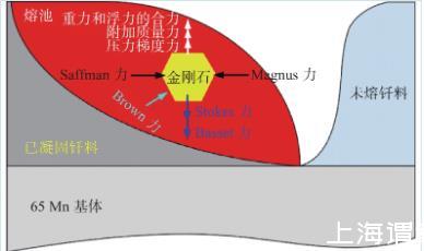 液態(tài)釬料的橫向速度使金剛石顆粒兩邊的相對速度不同,使金剛石顆粒發(fā)生旋轉,并帶動周圍流體流動,存在Magnus力FM為