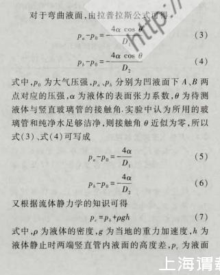 根據(jù)式(8),只需測量兩豎直管的直徑D1、D2以及管中凹液面的高低差h,便可以計算出待測液體的表面張力系數(shù)。