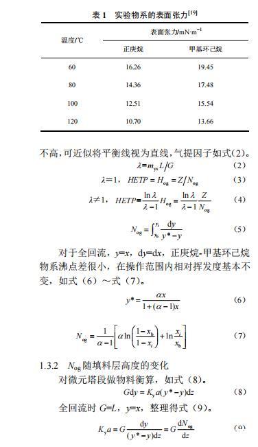 低表面張力物系在規(guī)整填料塔中的流體力學性能和傳質(zhì)性能(一)