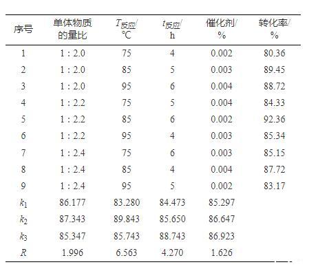 表1正交實驗優(yōu)化反應(yīng)條件