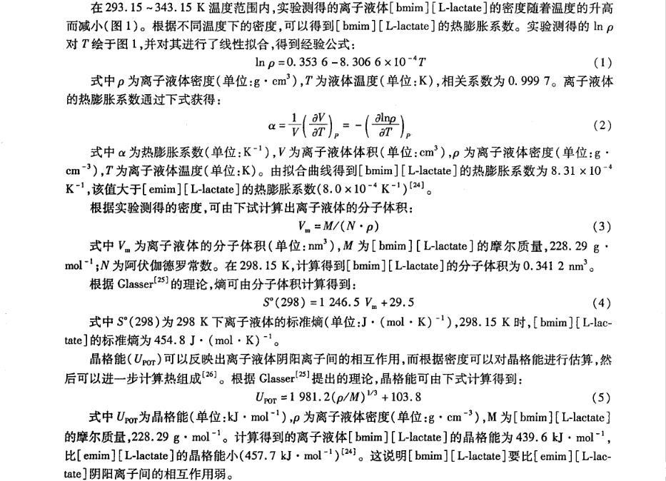 根據(jù)實(shí)驗(yàn)測得的密度,可由下試計(jì)算出離子液體的分子體積: