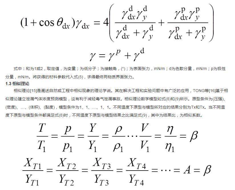 本文中原型與模型分別是指接觸角法與調(diào)和平均法,實驗材料及儀器相同,原型條件是測(測試溫度)、加(加熱時間)、靜(靜置時間)、(液滴體積)、(標準大氣壓);模型條件是測1(測試溫度)、加1(加熱時間)、靜1(靜置時間)、1(液滴體積)、1(標準大氣壓)。當相似系數(shù)為1時,采用調(diào)和平均法修正接觸角法。