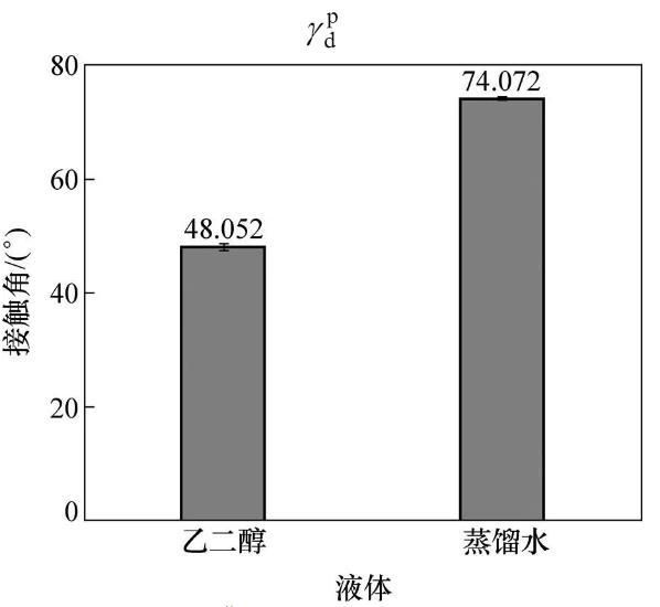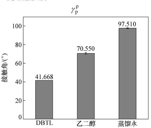 調和平均法計算CBT500與DBTL界面張力(12),CBT500、DBTL表面張力()、極性分量(p)、色散分量(d)研究是基礎。CBT500色散分量、極性分量通過引入2種測試液體求解二元二次方程組,DBTL色散分量、極性分量通過研究DBTL在PP薄板上靜態(tài)接觸角并結合表面張力是材料極性分量、色散分量之和進行二元二次方程組求解。