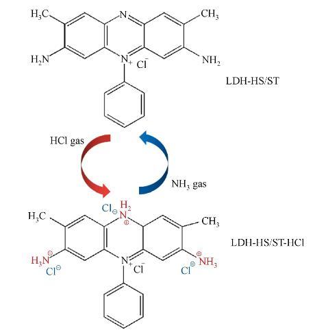 圖5 HCl和NH3氣體對LDH-HS/ST LB復(fù)合膜的化學(xué)反應(yīng)機(jī)理