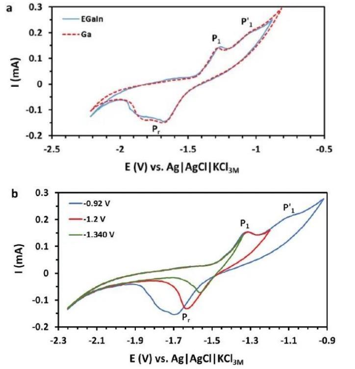 電化學(xué)氧化作用可以誘導(dǎo)液態(tài)金屬表面生成不同的氧化物或氫氧化物薄層,而這種表面變化對界面張力的影響非常顯著。例如,研究發(fā)現(xiàn),氧化鎵薄膜會在特定的電位下破裂并溶解,使得液態(tài)金屬的表面張力急劇下降。通過控制電化學(xué)氧化的電位,能夠在微觀層面實現(xiàn)液態(tài)金屬的“開關(guān)”效應(yīng),有望用于開發(fā)可控液態(tài)金屬元件。