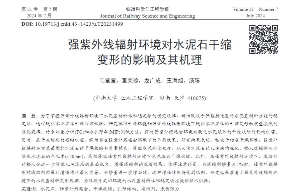 當(dāng)摻量進(jìn)一步增加時(shí),這種增強(qiáng)作用將受到限制。研究結(jié)果厘清了強(qiáng)紫外線輻射環(huán)境下的水泥基材料變形規(guī)律,為服役于類(lèi)似環(huán)境的水泥基材料體積穩(wěn)定調(diào)控提供技術(shù)依據(jù)。