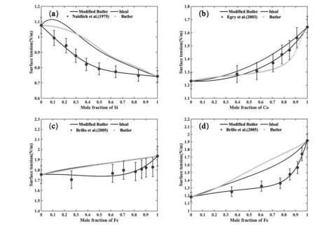 基于Butler模型對表相的偏摩爾過剩吉布斯自由能進(jìn)行修正以生成二元合金體系的表面張力模型;
