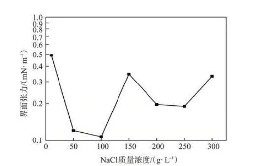 圖4含不同濃度NaCl的TPHS溶液與原油間的界面張力(TPHS質(zhì)量分數(shù)0.3%)