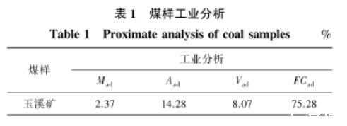 1)首先將取自玉溪煤礦煤樣進(jìn)行破碎,篩選出60~80目的顆粒煤6份。