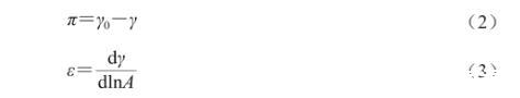 式中:π界面壓/(mN/m);γ0是純油-水界面的張力值/(mN/m);γ為溶液界面張力的變化/(mN/m);A為界面面積/mm2;ε為界面彈性模量/(mN/m)。