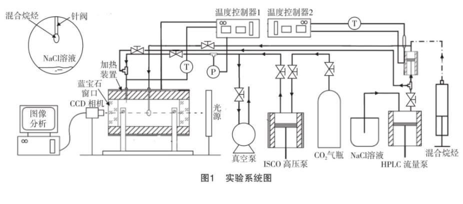 在CO2混相驅(qū)油工程發(fā)展迅速的大背景下,本實驗試圖借助先進的ASDA-P技術(shù),用傳統(tǒng)的高壓懸滴法測出不同溫度壓力下CO2和混合烷烴的界面張力,并采用外推法對最小混相壓力(MMP)進行預(yù)測。