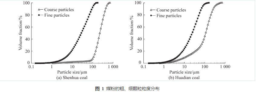 圖1煤粉的粗、細(xì)顆粒粒度分布