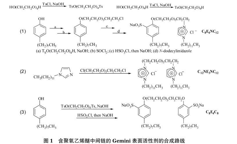 Gemini表面活性劑是具有雙親水雙親油特殊結(jié)構(gòu)的一類(lèi)表面活性劑,因其結(jié)構(gòu)的特殊性和分子結(jié)構(gòu)設(shè)計(jì)的多樣性,使其在性質(zhì)和應(yīng)用方面有別于其他表面活性劑,具有表面活性更高,臨界膠束濃度(cmc)更低等特點(diǎn)。