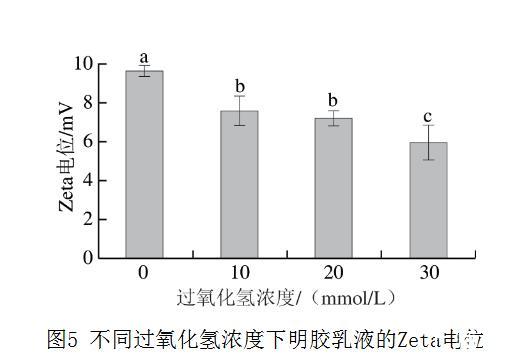 圖5 不同過氧化氫濃度下明膠乳液的Zeta電位