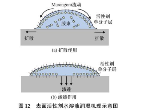 圖12表面活性劑水溶液潤濕機(jī)理示意圖