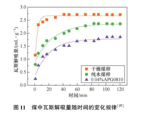 圖11煤中瓦斯解吸量隨時(shí)間的變化規(guī)律[37]