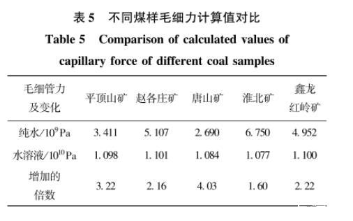 表5不同煤樣毛細(xì)力計(jì)算值對比