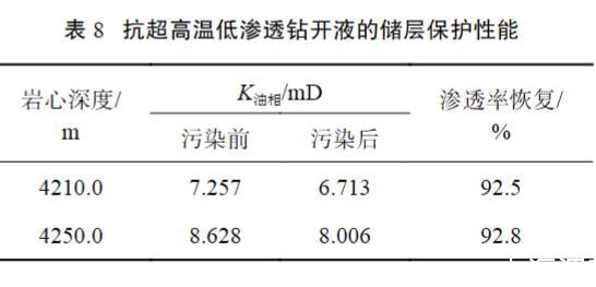 表8抗超高溫低滲透鉆開(kāi)液的儲(chǔ)層保護(hù)性能