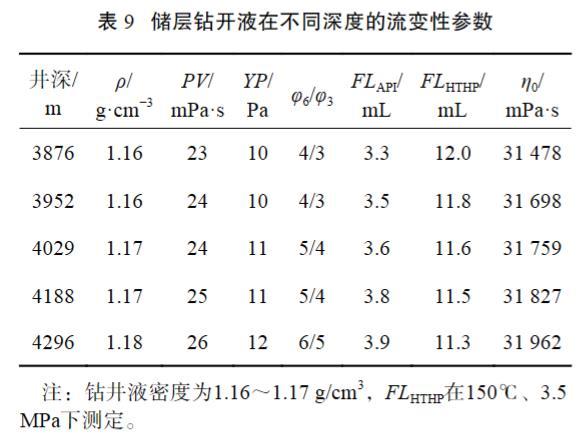 表9儲(chǔ)層鉆開(kāi)液在不同深度的流變性參數(shù)