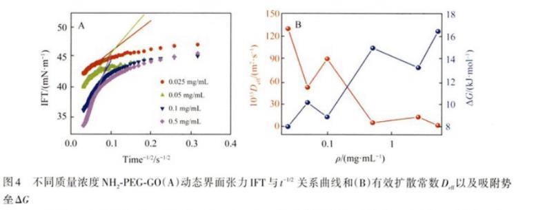 計算得到了NH2-PEG-GO吸附能壘ΔG,如圖4B所示。發(fā)現隨著NH2-PEG-GO質量濃度增加,吸附能壘增加,意味著NH2-PEG-GO的界面吸附受到了阻礙。