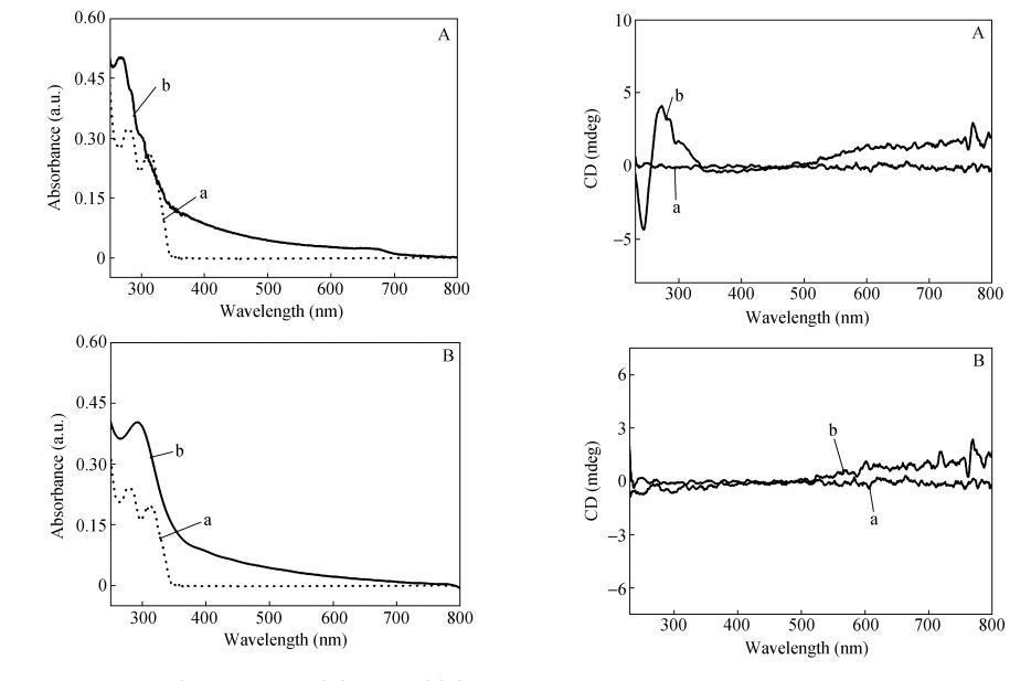 這個(gè)位置對(duì)應(yīng)于香豆素基團(tuán)的吸收帶,因此歸屬于香豆素基團(tuán)的CD信號(hào)。在CODA單體LB膜中,香豆素基團(tuán)間形成了緊密的H-聚集,而且由于相鄰兩個(gè)芳香環(huán)受到π-π體系間靜電斥力的影響以"面對(duì)面"重疊排列的可能性很小,通常存在錯(cuò)位。在單分子膜壓縮過程中,香豆素基團(tuán)間強(qiáng)烈的π-π堆積形成螺旋排列,并且由于過度擠壓,體系鏡面對(duì)稱性被打破,某一方向的螺旋堆砌結(jié)構(gòu)在LB膜中占主導(dǎo)地位,從而產(chǎn)生超分子手性。需要指出的是,CODA單體LB膜手性信號(hào)強(qiáng)度和方向與沉積過程密切相關(guān),即不同批次制備出的LB膜手性信號(hào)強(qiáng)度大小不一甚至是方向相反。換句話說CODA單體LB膜形成的螺旋結(jié)構(gòu)方向是隨機(jī)的。但是對(duì)于CO2DA單體LB膜,分子排列較松散,存在局部的缺陷,香豆素基團(tuán)間無法形成緊密有序的規(guī)整排列,沒有觀察到明顯的CD信號(hào)(圖5(B))。
