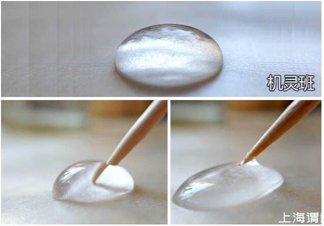 引申實(shí)驗(yàn),在水滴上放置1滴油,把它們混合在一起后,再用干凈的牙簽戳混合后的液滴,看看此時(shí)會(huì)發(fā)生什么現(xiàn)象。然后用蘸有洗潔精的牙簽戳混合后的液滴,看看又會(huì)出現(xiàn)什么現(xiàn)象。