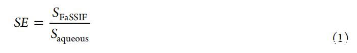 溶解度增強(qiáng)SE計算為在FaSSIF和水性緩沖液中測得的溶解度比率(等式1):