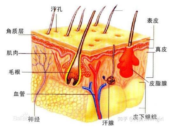 下面我們來分析皮膚的結(jié)構(gòu)。皮膚的結(jié)構(gòu)如下圖所示: