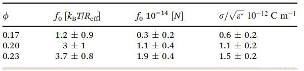 在模擬中,f0以kBT/Reff為單位,這是因?yàn)镽eff是距離單位,kBT是能量單位。因此,在用物理單位表示f0時(shí),必須考慮T和Reff的不確定性。然而,經(jīng)過(guò)誤差分析,我們發(fā)現(xiàn)Df0僅由(Df0)Df的貢獻(xiàn)決定。