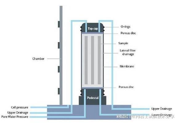 典型的三軸試驗(yàn)涉及將高度直徑比為2:1的密封圓柱形土壤試樣限制在加壓壓力室中,以模擬定義的應(yīng)力條件。然后對試樣進(jìn)行剪切,直到破壞,從而確定其剪切強(qiáng)度特性。試樣通常先飽和,然后固結(jié),最后剪切,大多在壓縮條件下。