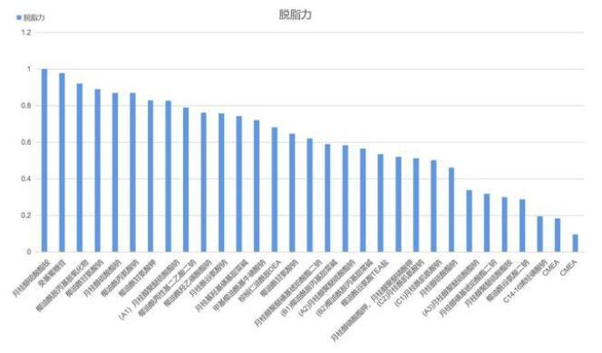 從上述數據中可以看出,在規(guī)定條件下,脫脂力最強的是月桂醇硫酸酯銨,脫脂力最弱的是兩款CMEA;