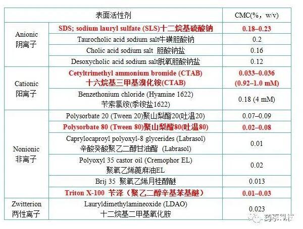 常見(jiàn)表面活性劑的種類及臨界膠束濃度