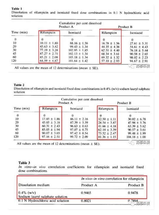 利福平與異煙肼復(fù)方制劑在進(jìn)行溶出曲線測(cè)定時(shí)發(fā)現(xiàn)利福平在0.1N鹽酸中不穩(wěn)定,發(fā)生降解。由于利福平在水中不溶,因此采用了0.4%SDS溶液進(jìn)行了研究,結(jié)果表明在整個(gè)分析檢測(cè)過(guò)程中無(wú)降解。而且,0.4%SDS溶液的體內(nèi)外相關(guān)性很好。