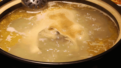 等到正式熬煮時(shí),湯里還會(huì)出現(xiàn)泡沫,不過(guò)此時(shí)的泡沫量較少,顏色奶白,看起來(lái)干凈很多,這是肉中的蛋白質(zhì)和脂肪被煮了出來(lái)。此時(shí)的泡沫可以保留,但如果覺(jué)得影響外觀,或者是在減肥,也可以撇掉。