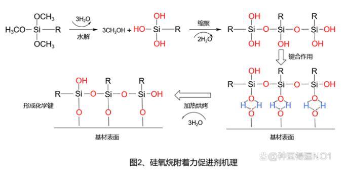 1)、用作附著力促進(jìn)劑的作用機(jī)理;