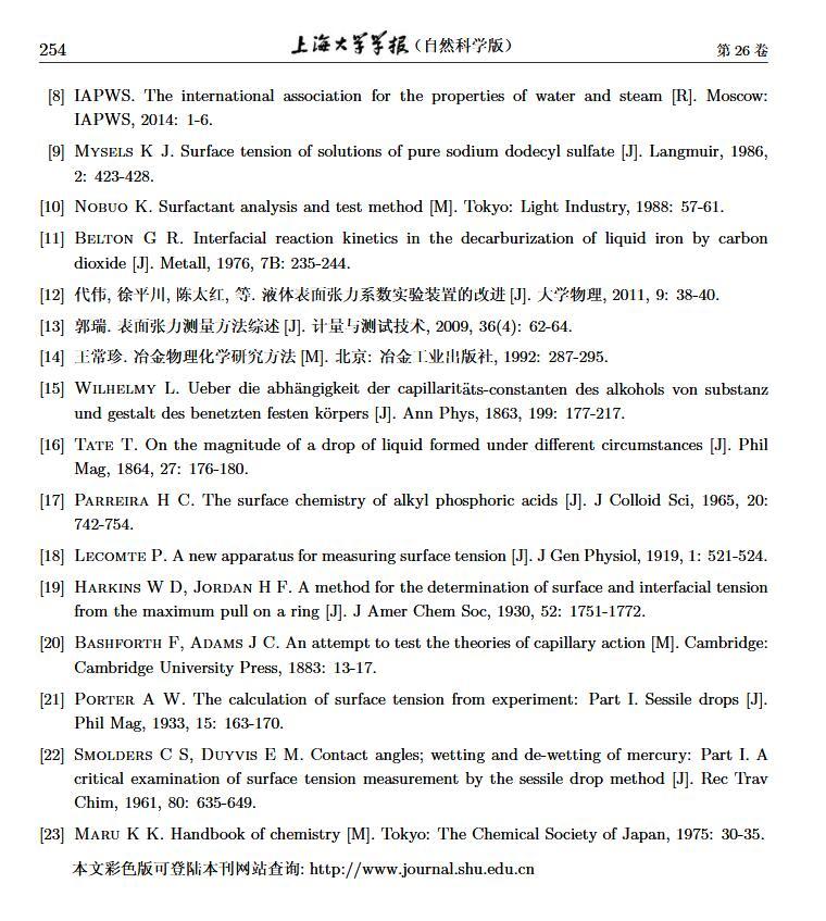 > 新型懸滴實(shí)驗(yàn)系統(tǒng)的研制與二甲基亞砜/甲醇混合物表面張力測量(二)