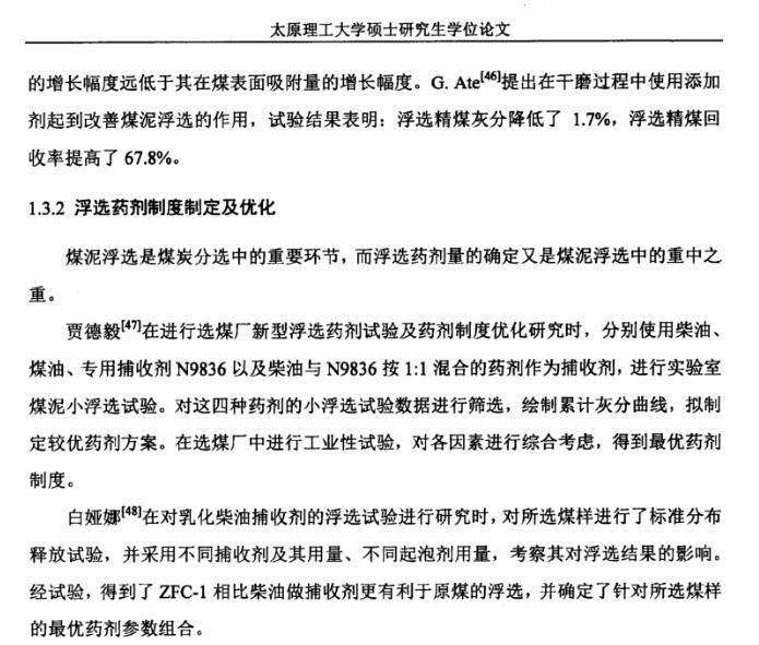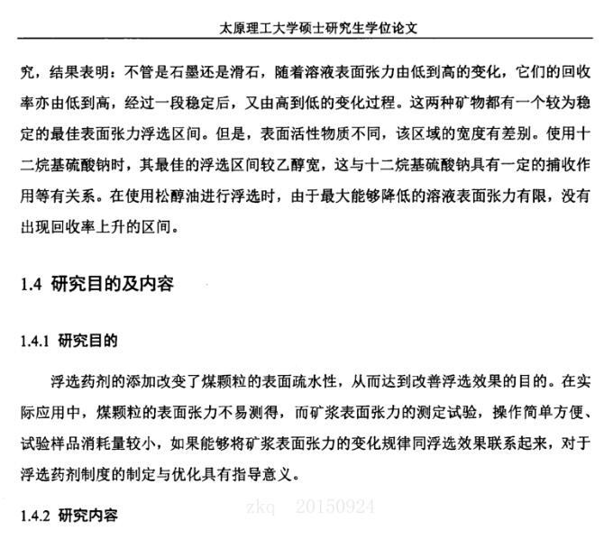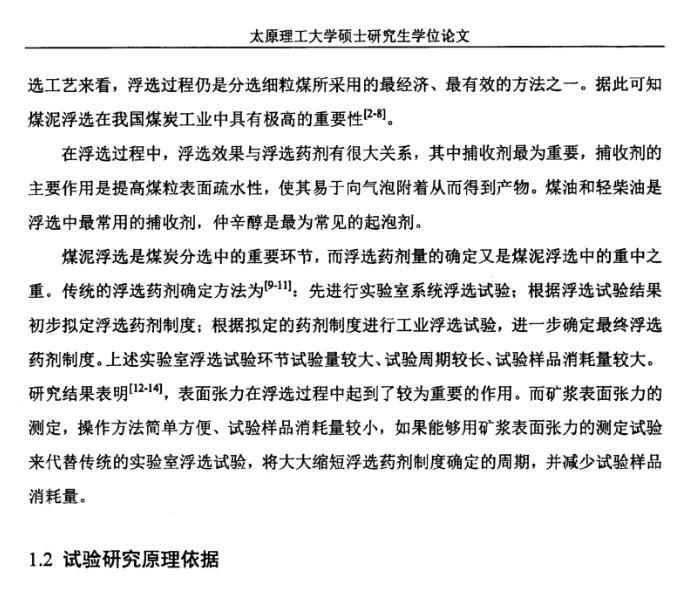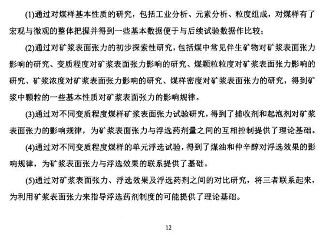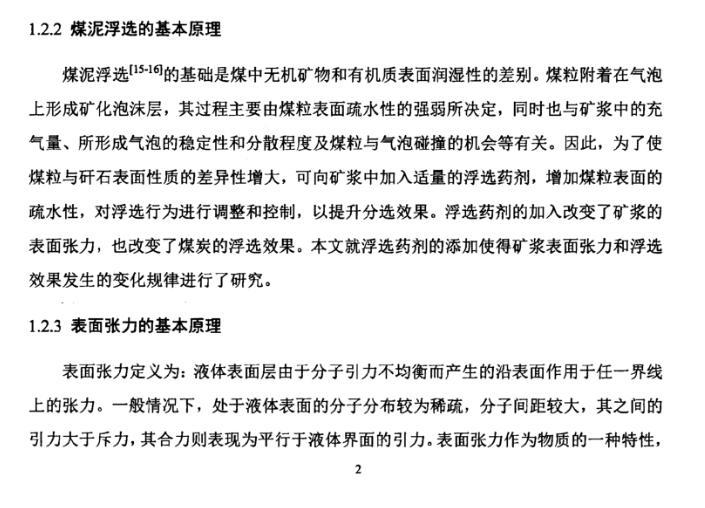 為研究浮選效果與礦漿表面張力之間的關(guān)系,對(duì)-0.5mm的平朔弱粘煤、馬蘭焦煤和晉城無煙煤進(jìn)行了浮選試驗(yàn),研究表明:煤油或仲辛醇用量適當(dāng)時(shí),隨著藥劑用量的增加,礦漿表面張力降低,可燃體回收率和精煤灰分升高,三者在同一藥劑量時(shí)達(dá)到極值點(diǎn),并在相同的藥劑量范圍內(nèi)維持在極值點(diǎn)附近;煤油或仲辛醇用量過大時(shí),隨著藥劑用量的增加,礦漿表面張力回升,可燃體回收率和精煤灰分回落。這一結(jié)果對(duì)利用礦漿表面張力來指導(dǎo)浮選藥劑制度、協(xié)助在線控制浮選可燃體回收率和精煤灰分有著重要意義。