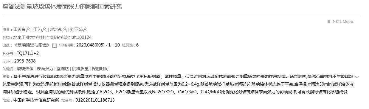 > 化學(xué)組成對(duì)無(wú)堿鋁硼硅OLED基板玻璃表面張力的影響——摘要、實(shí)驗(yàn)方法