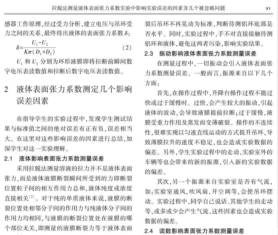 拉脫法測量液體表面張力系數(shù)的影響因素分析