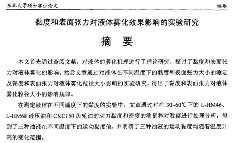 【摘要】:本文首先通過查閱文獻(xiàn),對液體的霧化機(jī)理進(jìn)行了理論研究,探討了黏度和表面張力對液體霧化的影響。然后文章通過對液體在不同溫度下的黏度和表面張力大小的測定及黏度和表面張力對液體霧化粒徑大小影響的實(shí)驗(yàn)研究,得出了黏度和表面張力對液體霧化粒徑大小的影響規(guī)律。