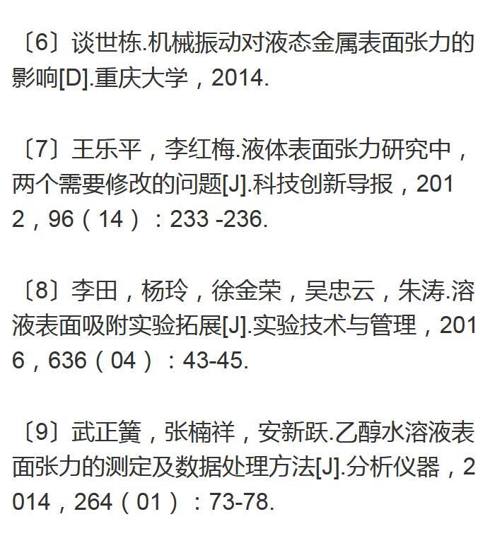 【摘要】:對于最大泡壓法測定表面張力的實驗,我們通過調(diào)整冒泡速度對其進行實驗探索。實驗測試了冒泡速度分別為3,5,7,9,11s/個時,乙醇與異丙醇兩種溶液在濃度為10%,20%,30%,40%,50%時表面張力的大小。結(jié)果顯示,不同濃度的乙醇與異丙醇溶液,當冒泡速度為11s/個時,這兩種溶液的表面張力值最接近理論值。因此在測定表面張力的實驗時冒泡速度控制在10s/個以上,所得數(shù)據(jù)更精確。通過初步探索為表面張力實驗的教學改進提供了依據(jù)。