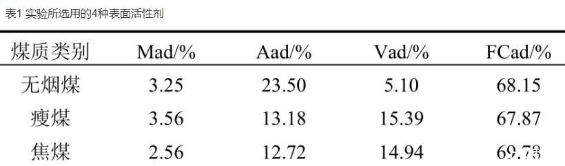 (3)表面活性劑因其自身的理化性質(zhì)不同,其對(duì)不同煤質(zhì)的潤濕性也不同。