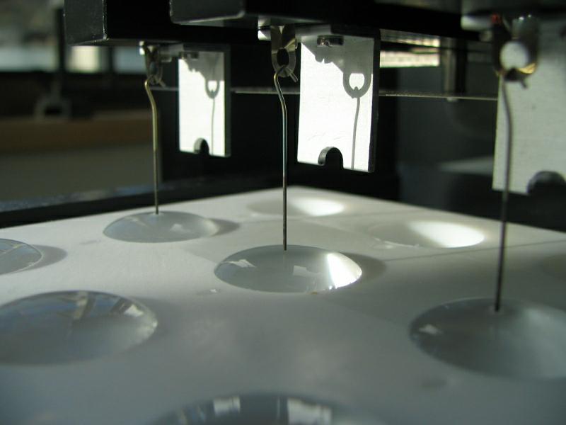 為了給用戶提供最為精確的表面張力/表面壓力,Kibron發(fā)展了一種新的精度超過0.2微克的微量天平,這種靈敏度與“最大拉力”原理相結合進行測量。測量時先將一個探針浸入到界面,然后慢慢拔出,記錄彎液面(粘附在探針上的液面)的重量,該重量用于計算表面張力。